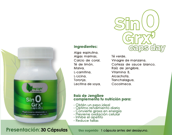 SIN 0 GRX CAPS DAY es el indicado para las personas que quieren obtener un peso ideal y un óptimo rendimiento diario, sus ingredientes ayudan a convertir las grasas en energía, previene la oxidación celular prematura además de inhibir el apetito, reduce tallas y es auxiliar en problemas de sobrepeso. En la actualidad las personas con sobrepeso ya no se consideran personas saludables, la ciencia ha comprobado que pueden llegar a tener múltiples y graves consecuencias en la salud como: constipación, problemas circulatorios, cardiacos, de nervios, hipertensión y hasta diabetes.